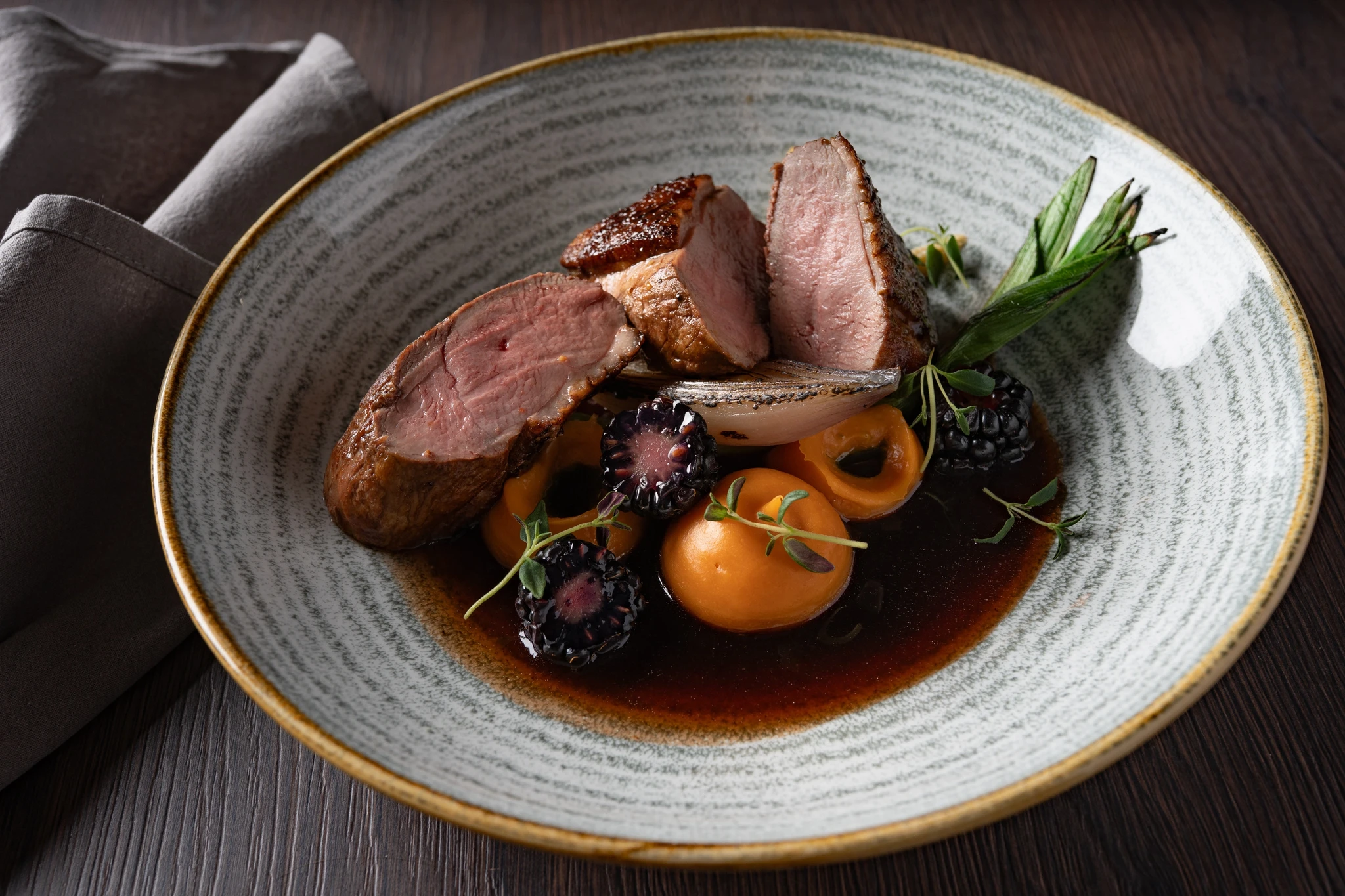Pardi rinnafilee maguskartuli kreemi ja portveini-trühvli leemega